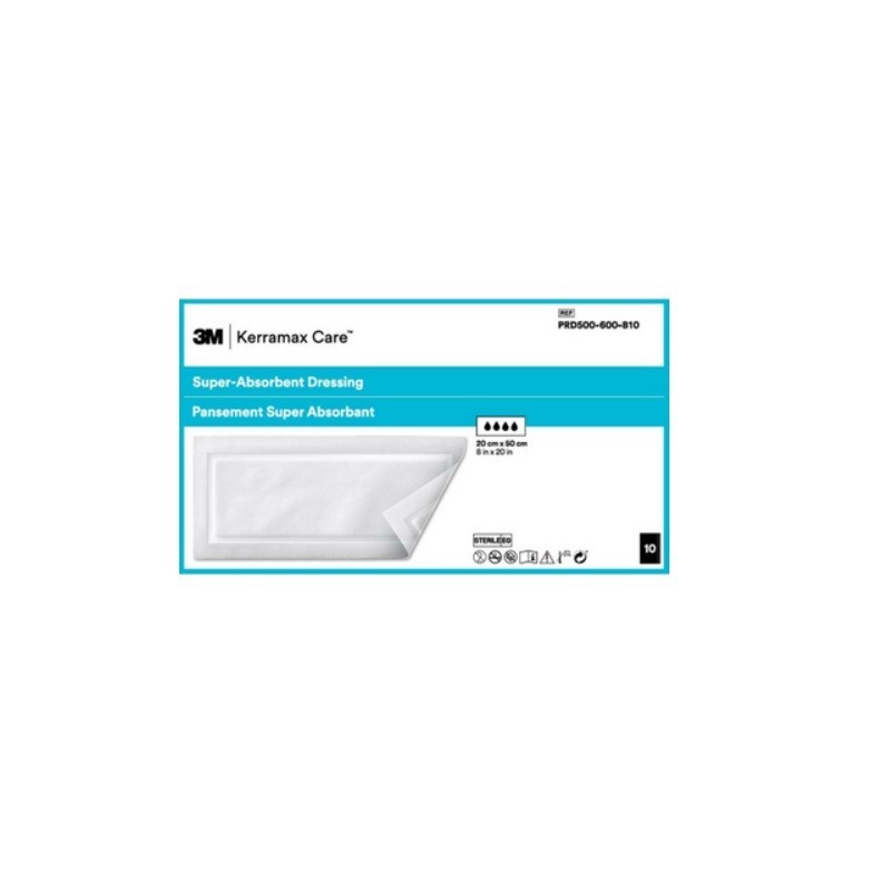 3M Kerramax Care Pansement Super Absorbant 20 cm x 50 cm est un pansement stérile et superabsorbant pour les plaies chroniques fortement exsudatives. Un exsudat chronique excessif peut ralentir la cicatrisation de la plaie.
