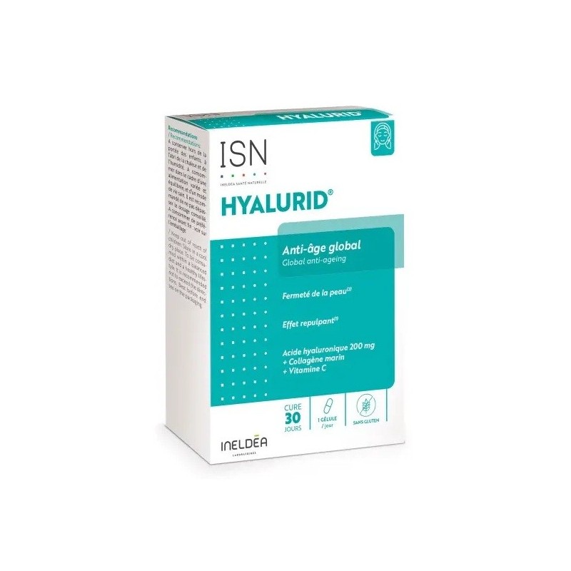 Ineldea Hyalurid 30 Gélules est un complément alimentaire à base d’acide hyaluronique, de collagène marin et de vitamine C.