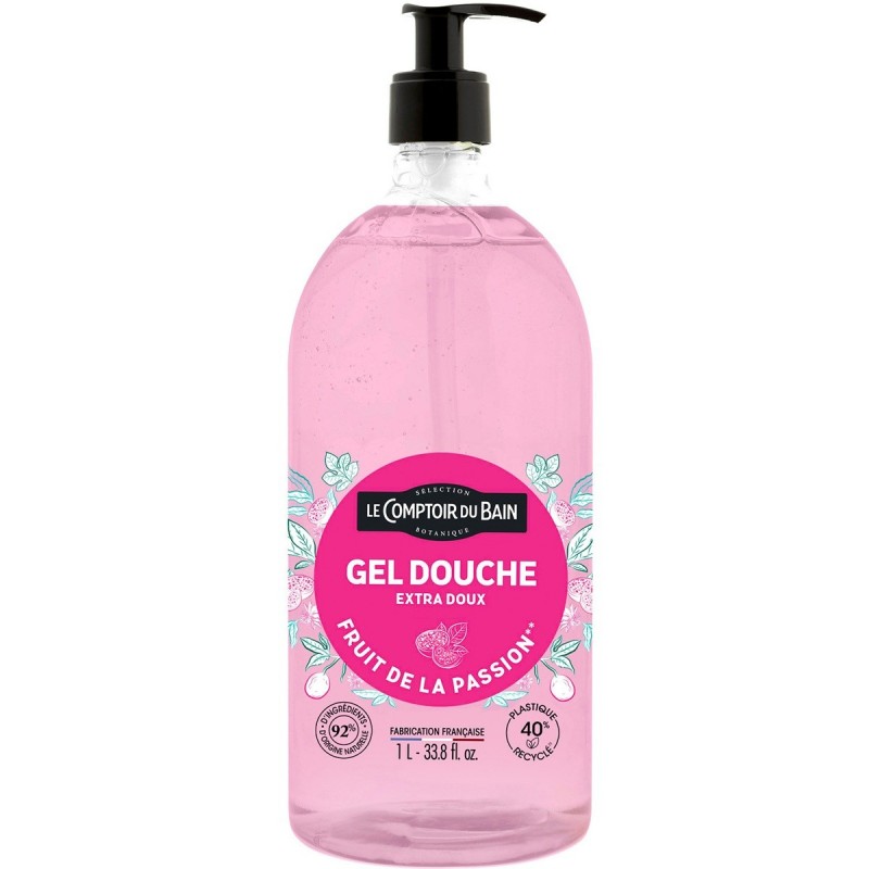 Le Comptoir du Bain Gel Douche Fruit de la Passion 1 L est un gel douche extra-doux au parfum de fruit de la passion, adapté aux peaux sensibles.
