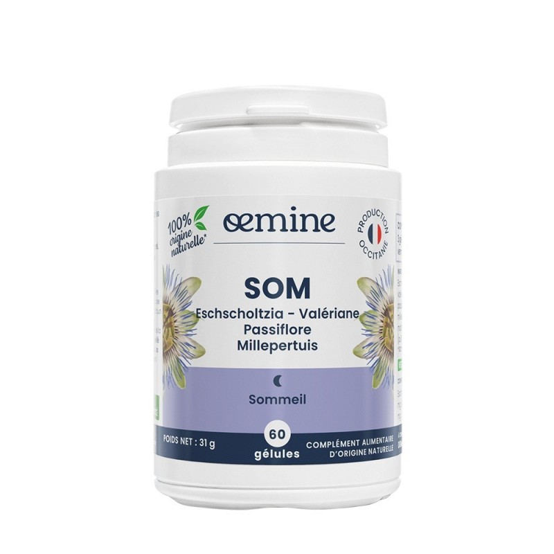 Oemine Som 60 Gélules est une complément alimentaire naturel pour une nuit calme et paisible. 3 gélules de Oemine Som sont l’équivalent des tisanes utiles pour une nuit paisible.