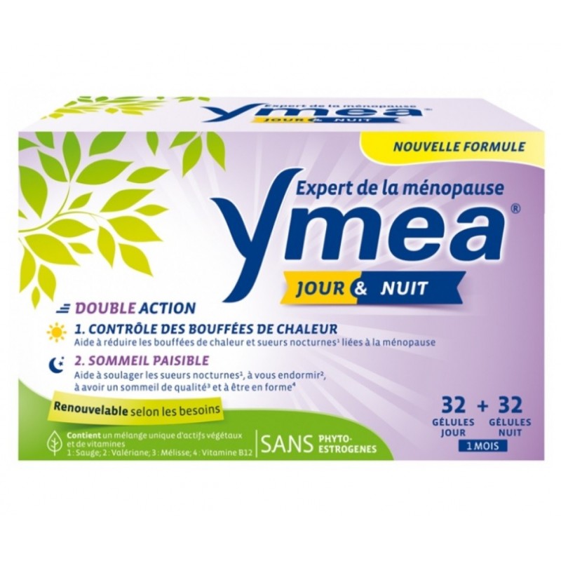 Ymea Jour & Nuit 64 Gélules est un complément alimentaire à base d'un mélange unique d'actifs végétaux et de vitamines. Une action ciblée le jour et la nuit sur les troubles physiologiques de la ménopause. À la ménopause, de nombreux signes physiologiques se manifestent (bouffées de chaleur, sueurs nocturnes, irritabilité, troubles du sommeil) et gênent les femmes dans leur vie quotidienne le jour comme la nuit.