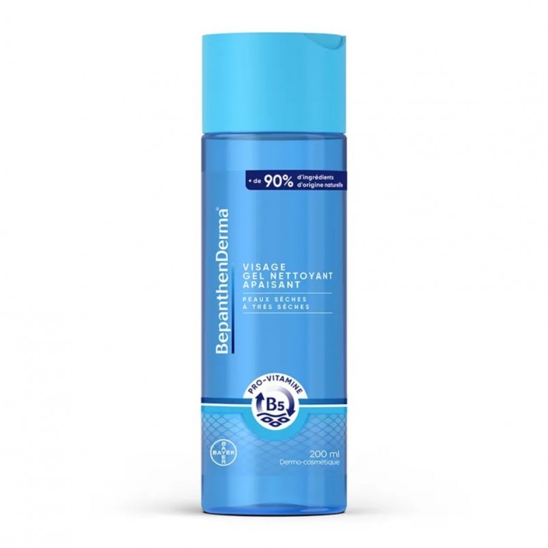 Bepanthen Derma Gel Nettoyant Apaisant Visage 200 ml nettoie en douceur la peau de votre visage tout en maintenant son hydratation naturelle. Sa formule douce et sans savon a été spécifiquement élaborée pour répondre aux besoins des peaux sèches à très sèches et permet d’apaiser immédiatement les sensations de tiraillements. Ce gel nettoyant pour le visage est composé à plus de 90 % d’ingrédients d’origine naturelle. Il convient aux adultes et aux enfants, et n’irrite pas les yeux.