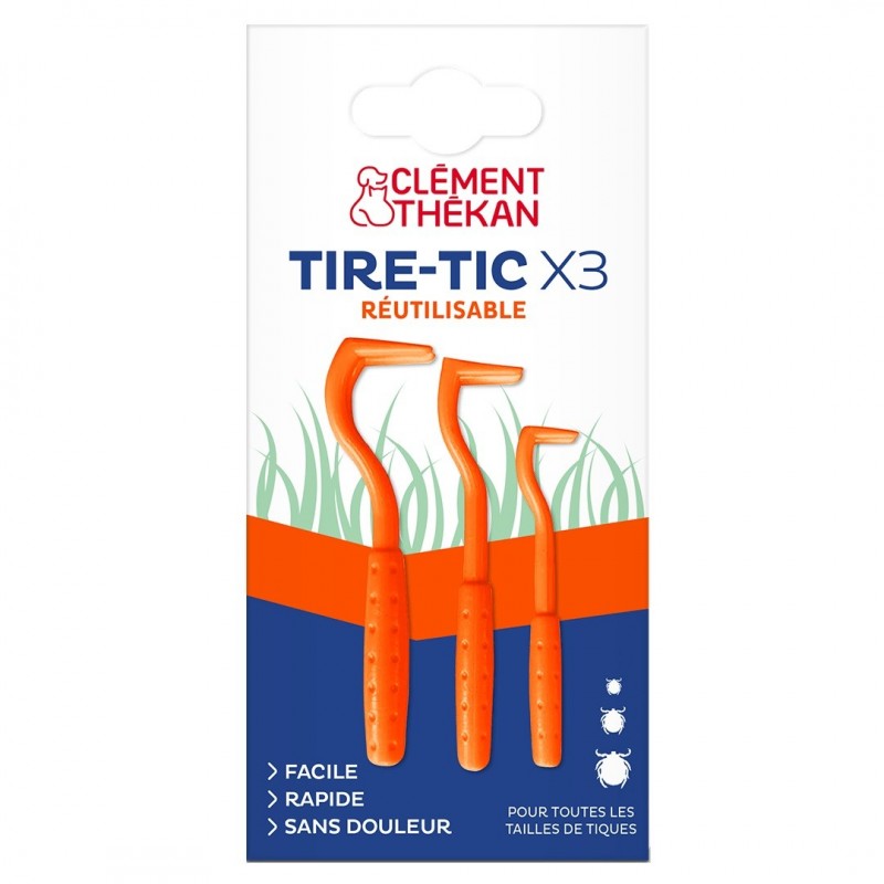 Clément Thékan Tire-Tic x 3 sont des crochets pour retirer les tiques en toute sécurité. Les trois crochets permettent de retirer les tiques de toutes tailles fixées sur le pelage des chiens, des chats, des lapins et des chevaux.