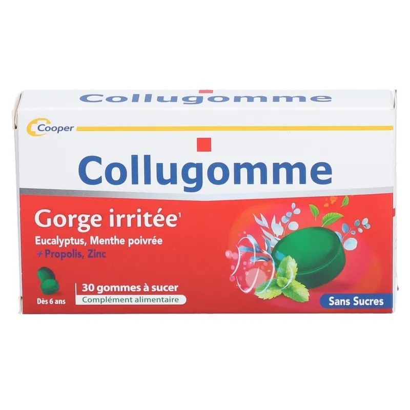 Cooper Collugomme 30 Gommes aide au soulagement des gorges irritées. Il contribue au bon fonctionnement du système immunitaire.
