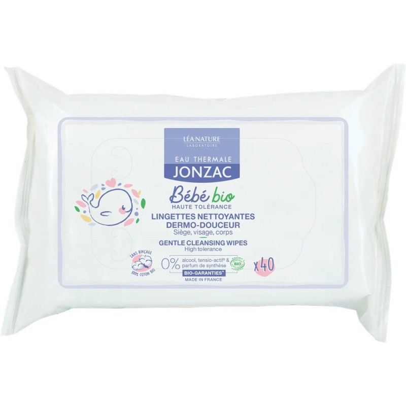 EAU THERMALE JONZAC BÉBÉ BIO LINGETTES NETTOYANTES DERMO-DOUCEUR 40 LINGETTES