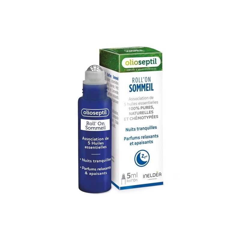 Olioseptil Roll’on Sommeil 5 ml associe 5 huiles essentielles d’orange douce, lavande, petit grain, marjolaine et camomille romaine, aux parfums relaxants et apaisants pour vous procurer un sommeil de qualité.