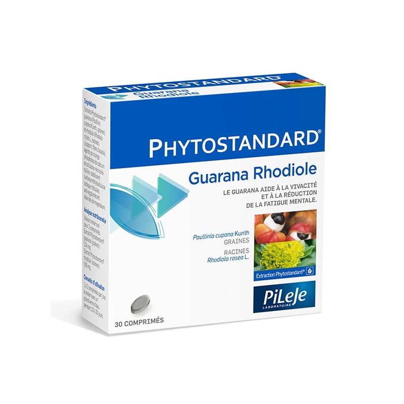 Pileje Phytostandard Guarana - Rhodiole 30 Comprimés est un complément alimentaire à base d'extrait de guarana et de rhodiole biologique.