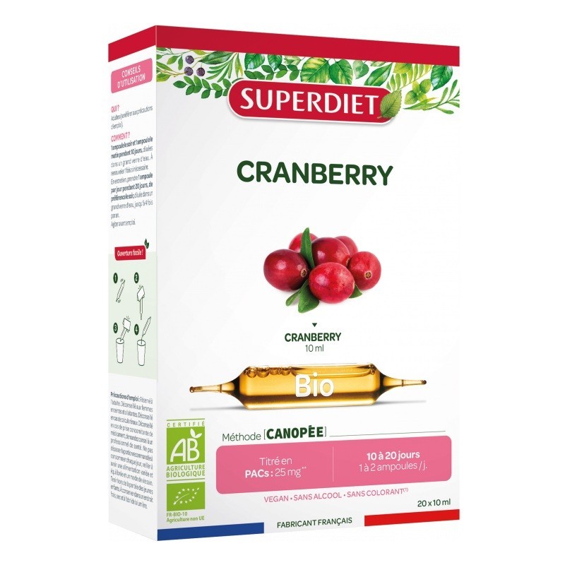 Superdiet Cranberry Bio 20 Ampoules est un complément alimentaire reconnu pour favoriser un bon confort urinaire.