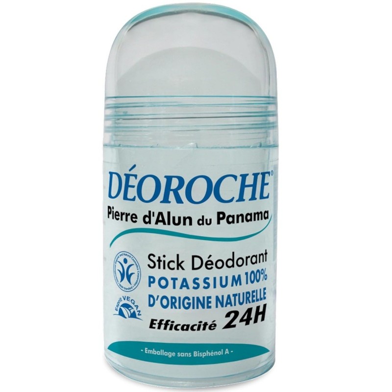 Déoroche Déodorant Stick à base de sels minéraux, à action antibactérienne, permet d'agir directement sur la flore bactérienne responsables de la formation des mauvaises odeurs, en régulant les sécrétions des glandes sudoripares, mais sans bloquer le processus naturel de la sudation en obstruant les pores, tout en apportant une fraîcheur cristalline. Sans aluminium chlorhydrate, sans parabens, sans parfum de synthèse, sans colorants, sans colorants, hypoallergénique.