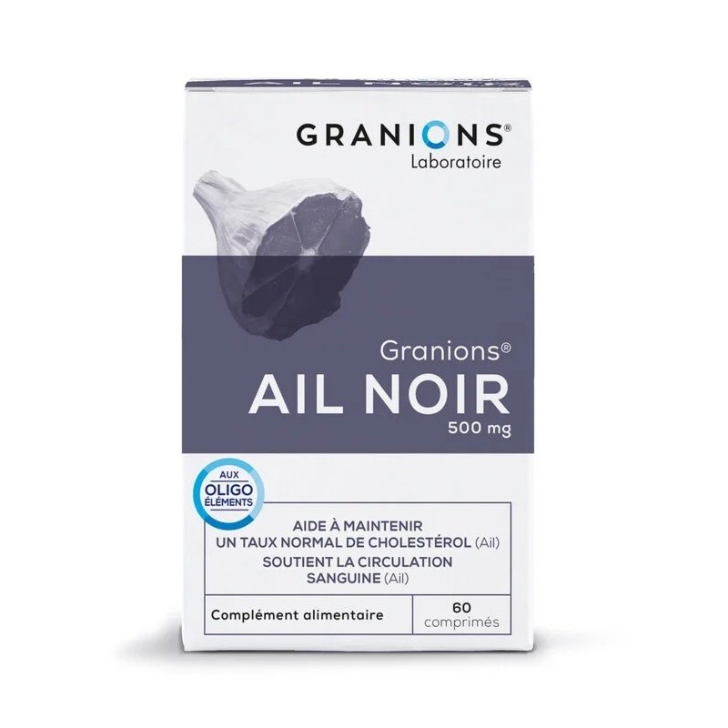 Granions Ail Noir 500 mg 60 Comprimés aide à maintenir un taux normal de cholestérol.