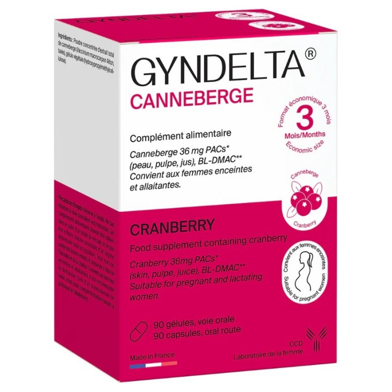 Gyndelta 90 Gélules est un complément alimentaire à base de canneberge 100% naturelle.