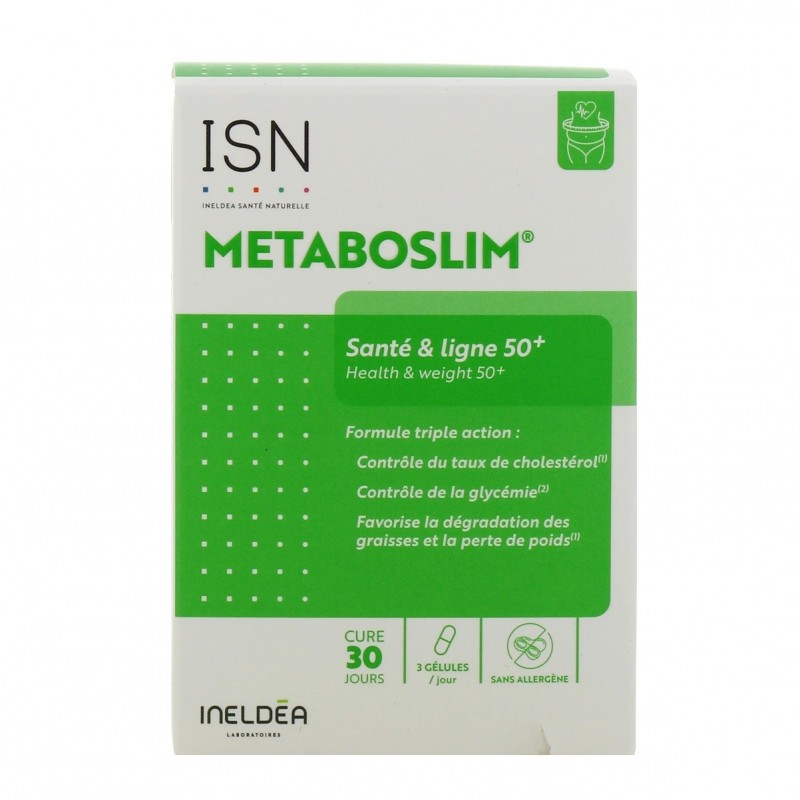 Ineldea Metaboslim 90 Gélules est un complément alimentaire à base d’un complexe objectivé (le metaboslim complex) associé à des vitamines (B, D et E) et du chrome permettant une triple action :