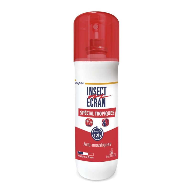 Insect Ecran Spécial Tropiques 75 ml est un produit répulsif à appliquer sur la peau. Il vous protégera des piqûres de moustiques pendant 8 heures. Formulé à base d’icaridine à 25%, ce répulsif est particulièrement efficace contre l'anophèle, vecteur du paludisme. En effet, l'OMS reconnaît l’icaridine comme « répulsif de premier choix pour la prévention du paludisme ». Ce répulsif est donc à privilégier en zones tropicale ou équatoriale. Il s’utilise dès 2 ans, en zone à risque de transmission de maladie vectorielle.