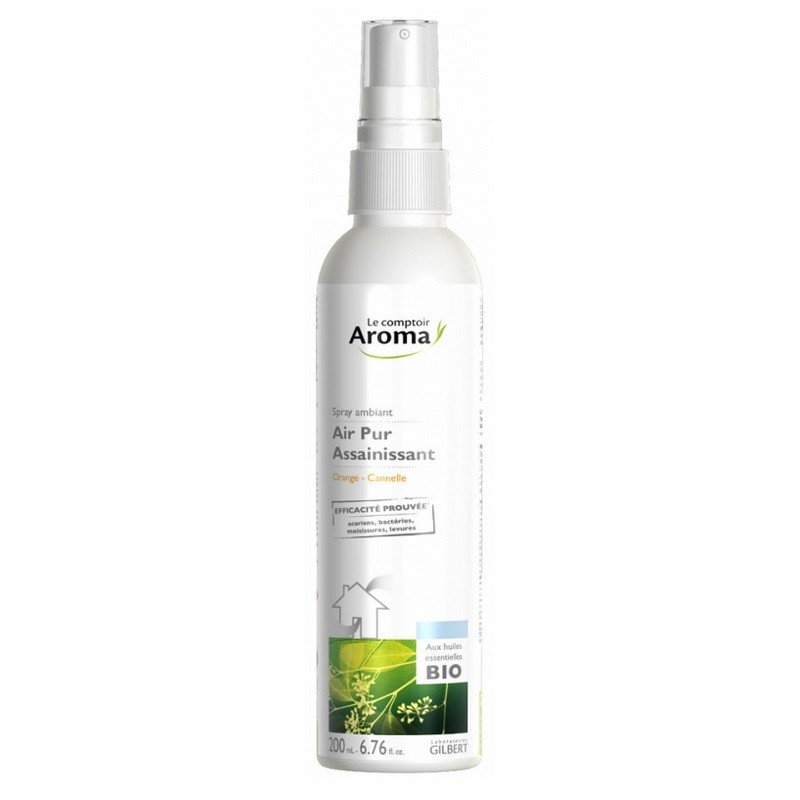 Le Comptoir Aroma Air Pur Spray Assainissant Orange Cannelle 200 ml formulé à base d'huiles essentielles biologiques de citron, orange douce, mandarine, girofle et cannelle permet d'assainir simplement votre maison. Ce spray à l'efficacité prouvée parfume agréablement l'intérieur de votre maison, il apporte une note olfactive fruitée et fraîche. Huiles essentielles 100% pures, qualité HEBBD, biologiques. Sans parfum, paraben, colorant.