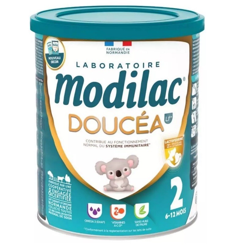Modilac Doucéa 2 6-12 Mois 820 g est un lait de suite qui convient à l'alimentation peu à peu diversifiée du nourrisson de 6 mois à 12 mois. Ce lait ne doit pas se substituer au lait maternel avant les 6 mois de l'enfant. Grâce à ses plus de 35 années de recherche, Modilac Doucéa est l'unique formule infantile en France, enrichie en Lactoferrine, 2e protéine du lait maternel.