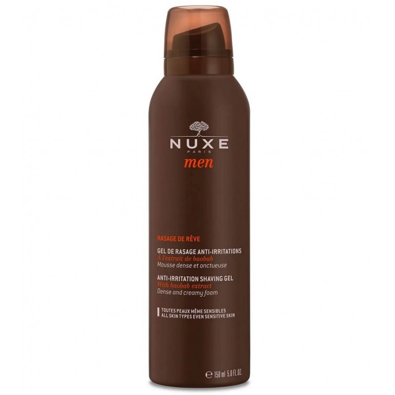 Nuxe Men Rasage de Rêve Gel de Rasage Anti-Irritations 150 ml est une mette mousse à raser en gel, dense et onctueuse, à l'extrait de bois de santal. Il permet un rasage facile et précis sans irritations. Parfum masculin boisé et épicé.