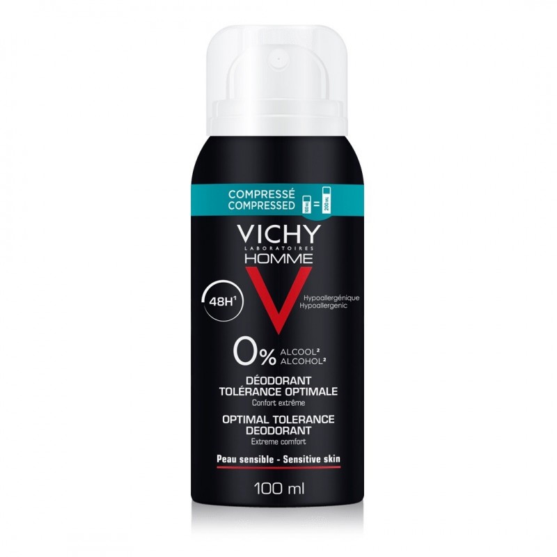 Vichy Homme Déodorant 48H Tolérance Optimale 100 ml est un déodorant sous forme compressé de tolérance optimale, pour les peaux sensibles des hommes. Le confort extrême est efficace 48H. Hypoallergénique. Sans alcool.