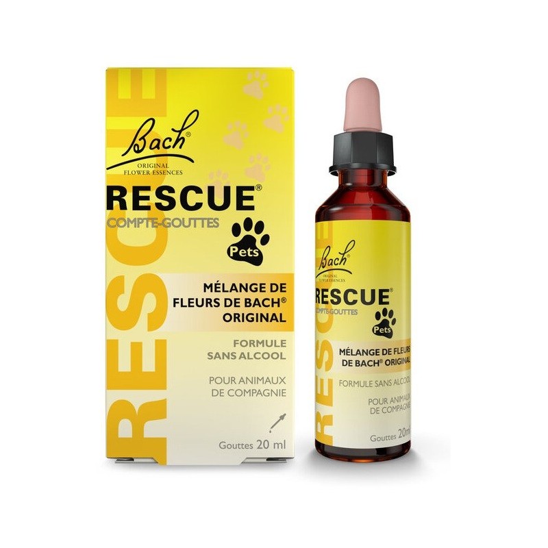 Bach Rescue Pet Dropper 20 ml is a dietary supplement for pets. Bach Rescue Pet Dropper helps to manage stress and strong emotions in our pets on a daily basis. Composed of 5 essences Bach Flower Original developed by Doctor Bach in the 1930s, Rescue is the emergency solution to help our little friends stay calm in all circumstances. This alcohol-free formula is suitable for all pets.