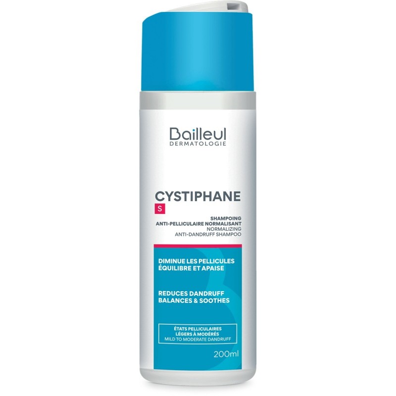Bailleul Cystiphane S Normalizing Anti-Dandruff Shampoo 200 ml, thanks to its exclusive antifungal complex, has a global action that effectively combats moderate dandruff conditions associated with itchy scalps. It rapidly eliminates dandruff. It prevents the reappearance of dandruff and purifies the fungal flora of the scalp. Soothes irritation and itching. Pleasantly scented, it eases styling and leaves hair soft and shiny.