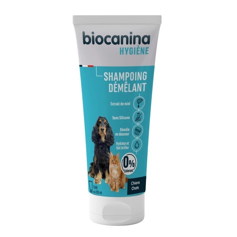 - The Biocanina Detangling Shampoo has a gentle washing base, without Lauryl ether sulphate (LES), parabens or colourants. It does not irritate the sensitive skin of animals and helps to moisturise and protect it with each shampoo.