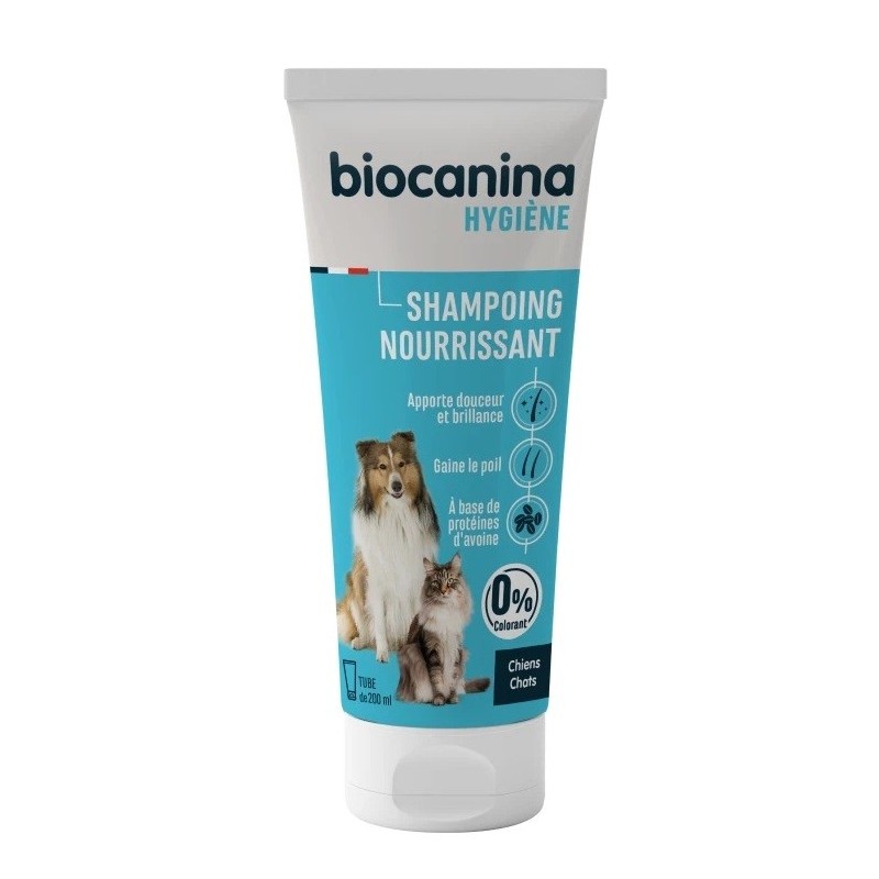 - Biocanina Nourishing Shampoo has a gentle cleansing base, without Lauryl Ether Sulphate (LES), parabens or colourants. It does not irritate the sensitive skin of animals and helps to moisturise and protect it with each shampoo.