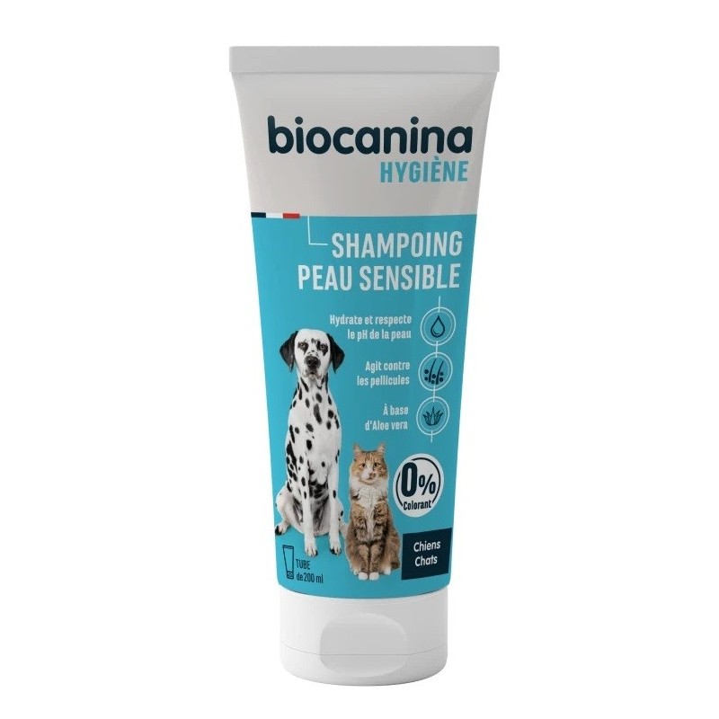 - The Biocanina Sensitive Skin Shampoo has a gentle washing base, without Lauryl ether sulphate (LES), parabens or colourants. Aloe vera moisturises by retaining water in the hair fibre while respecting the skin's natural pH. It also has an anti-dandruff action and helps to regulate sebum.