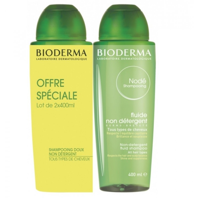 Bioderma Nodé Non-Detergent Fluid Shampoo 2 x 400 ml respects the physiological balance of even the most sensitive hair and scalp.