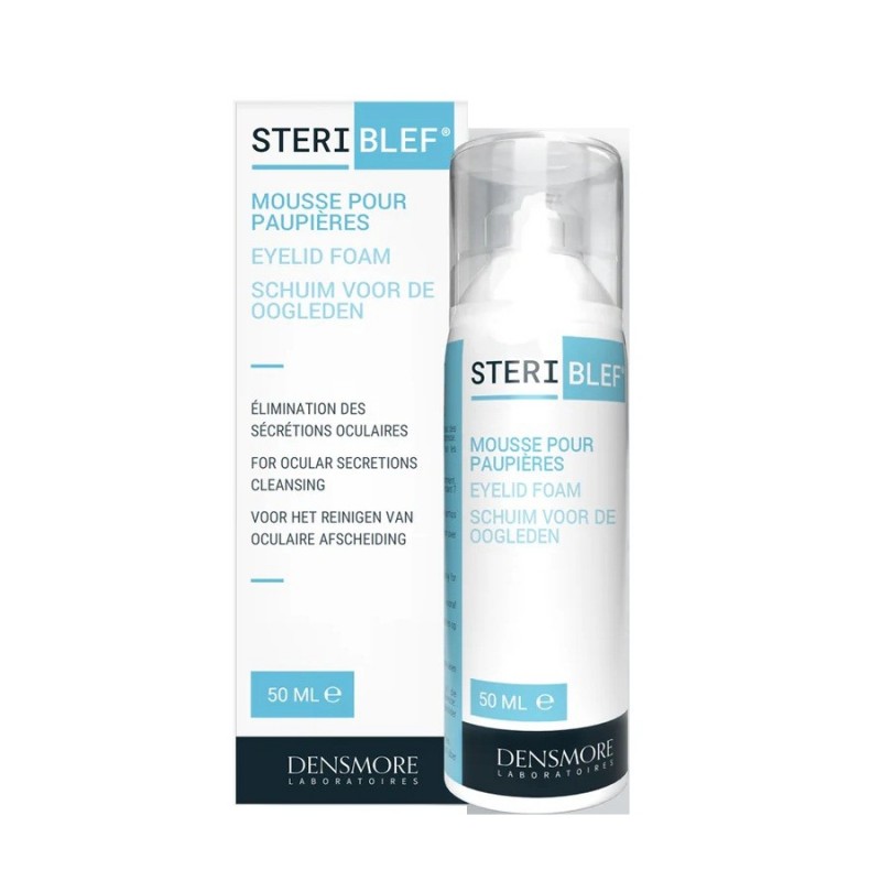 Densmore Steriblef Eyelid Foam 50 ml is a cleansing foam for the daily hygiene of eyelids and eyelashes, to be used to remove ocular secretions. It soothes eyelids sensitised to external aggressions. Soothes eyelids affected by dryness. It removes excess sebum, pollen and other residues from the eyelids.