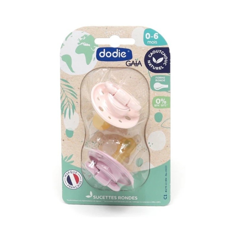 DODIE GAIA 2 ROUND ANATOMICAL RUBBER SOOTHERS 0-6 MONTHS C1