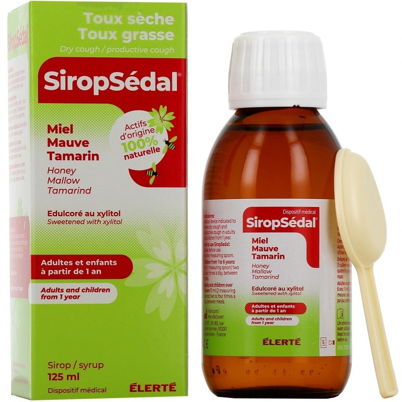 Élerté SiropSédal Dry Cough Oily Cough 125 ml is a medical device indicated for the relief of non-productive (dry) cough and productive (oily) cough in adults and children aged 1 year and over.
