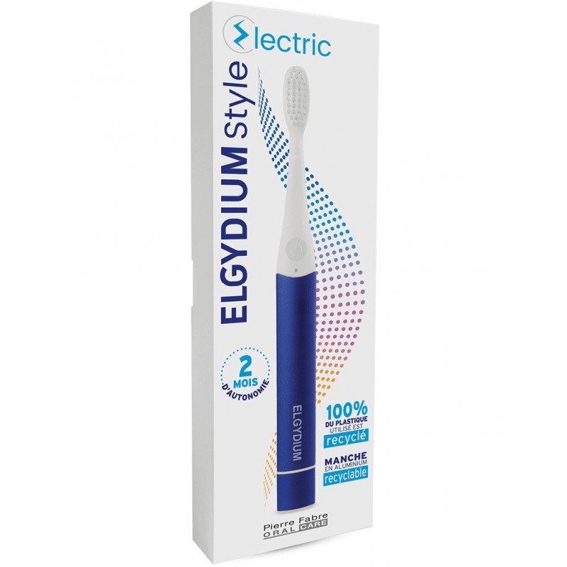 Elgydium Style Electric Toothbrush Blue is a battery-operated electric toothbrush that combines design and eco-friendly materials, with the effectiveness of sonic technology. It offers optimum brushing quality thanks to its sonic technology, for gentle, effective plaque removal. Its high-quality nylon bristles are diamond-ground to respect the sensitivity of teeth and gums.