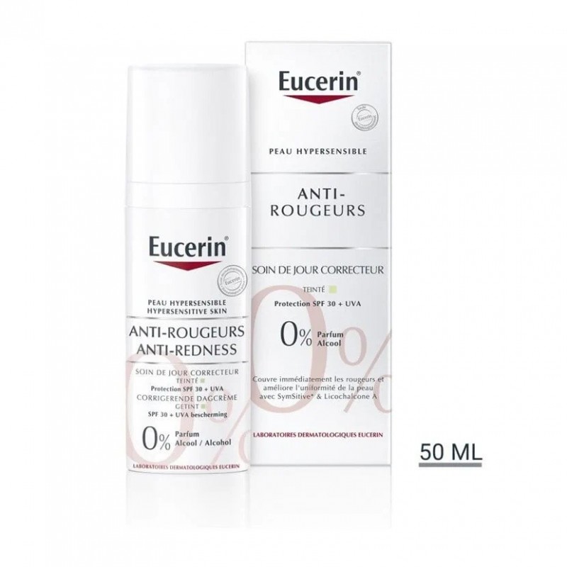Eucerin AntiRougeurs Soin de Jour Correcteur SPF30 has been specially developed for skin prone to redness and hypersensitivity. Applied to cleansed skin, it instantly calms irritation and camouflages visible redness.
