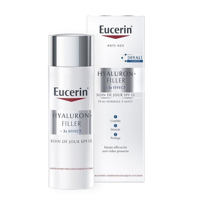Eucerin Hyaluron-Filler + 3x Effect Day Cream SPF15 Normal to Combination Skin 50 ml fights the skin ageing process, for visibly younger-looking, smoother and radiant skin.