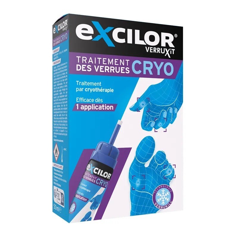 Excilor Cryo Warts Treatment 50 ml is a practical DIY treatment for solving the problem of plantar and vulvar warts. Excilor Cryo works by cryotherapy, freezing the wart right down to the root. The warts and their roots are completely frozen for a very short time and begin a natural elimination process. 10 to 14 days later, these unsightly skin growths fall off by themselves, revealing new, healthy skin in place of the wart. A single application is generally enough to solve the problem, except in the case of particularly stubborn warts. It is then necessary to repeat the application two weeks later.