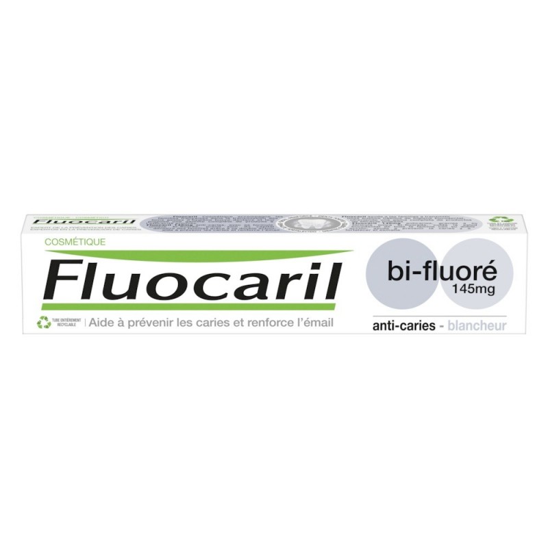 Fluocaril Bi-Fluoride Whitening Toothpaste 145mg 75 ml helps prevent cavities and restore the natural whiteness of teeth.