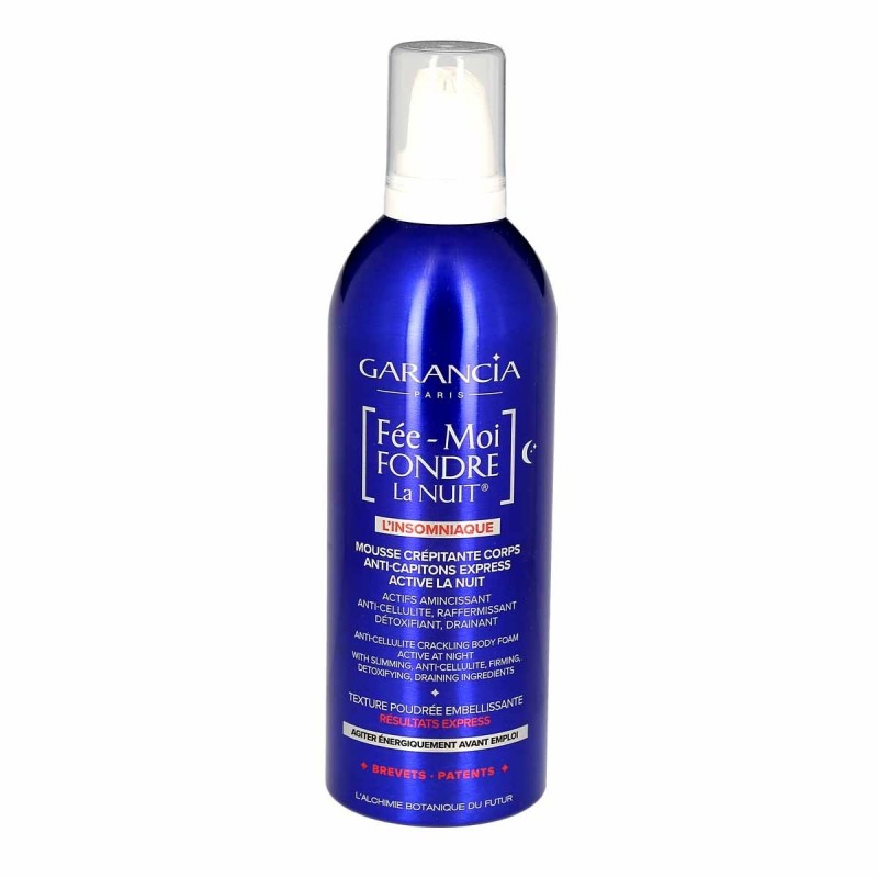 Garancia Fée-Moi Fondre La Nuit The Insomniac 400 ml is a slimming treatment with multi-action active ingredients: slimming + anti-dandruff + firming + detoxifying + draining to help you eliminate dimpled skin, while you sleep peacefully. Its unique texture crackles on application and penetrates instantly to beautify the skin, while activating fat burning.