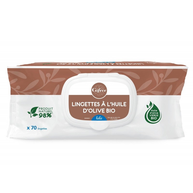 Gifrer Virgin Olive Oil Cleansing Wipes 70 Wipes gently cleanse and soothe babies' skin for use on the seat, face and hands. Hypoallergenic. Suitable for sensitive skin. Dermatologically and paediatrically tested. This product is a cosmetic. For more information, read the packaging carefully.