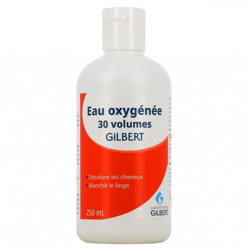 Gilbert Hydrogen Peroxide 30 Volumes 250 ml bleaches linen, bleaches hair and down, and removes all traces of blood, coffee, fruit or ink.