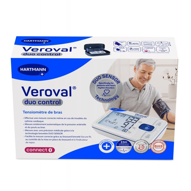 Hartmann Veroval Duo Control Upper Arm Blood Pressure Monitor Size L is recommended for measuring blood pressure in the upper arm. It is suitable for people with heart rhythm disorders who take their blood pressure daily. Blood pressure and pulse measurement on the upper arm is fully automatic. The patented Secure fit cuff, cuff adjustment control and resting indicator ensure reliable readings. It is available in two cuff sizes to best fit individual arm circumferences - size M (ø22-32cm) and size L (ø32-42cm). What's more, the cuff has a grip tab for intuitive and ergonomic fitting. The monitor lets you store up to 200 measurements.