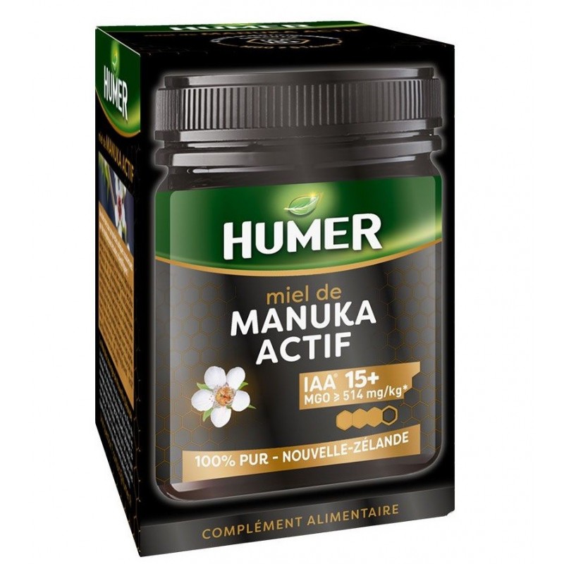 Active Manuka Honey IAA 15+ from Humer is a honey renowned for its antibacterial, healing, antioxidant, immunostimulant and anti-inflammatory properties. With the highest index in the range, it provides a higher level of activity. Thanks to its methylglyoxal content, which is greater than or equal to 696mg/kg, this honey acts on: