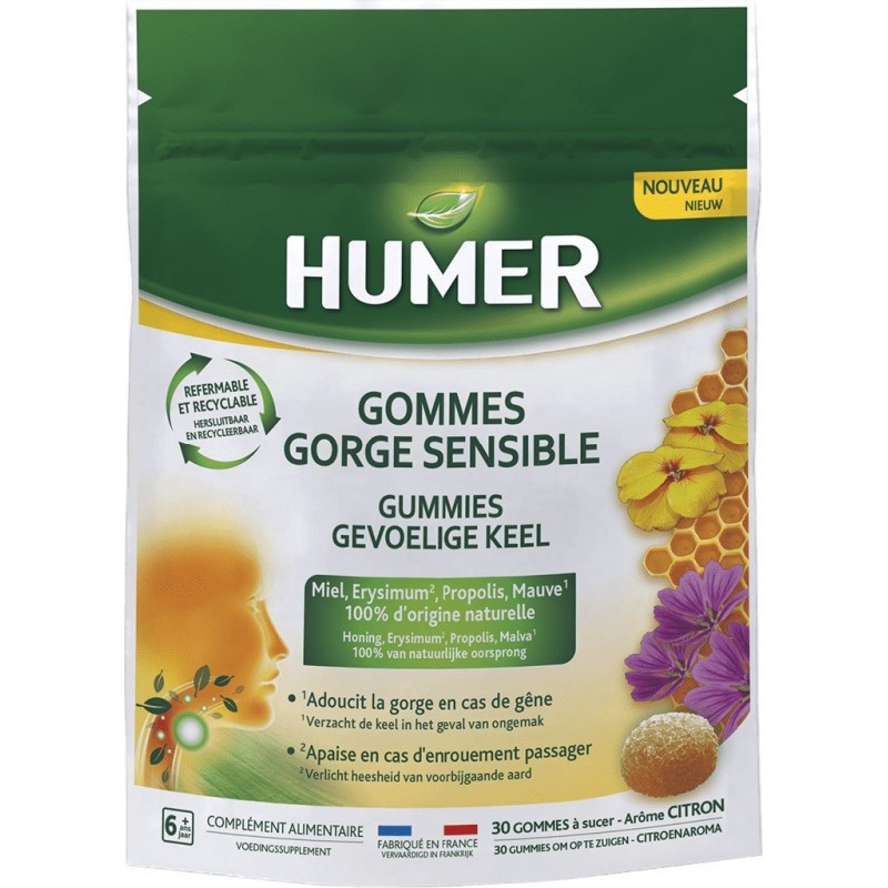 Humer Sensitive Throat Gummies 30 Gummies softens the throat in case of discomfort thanks to mallow and soothes in case of temporary hoarseness thanks to erysimum.