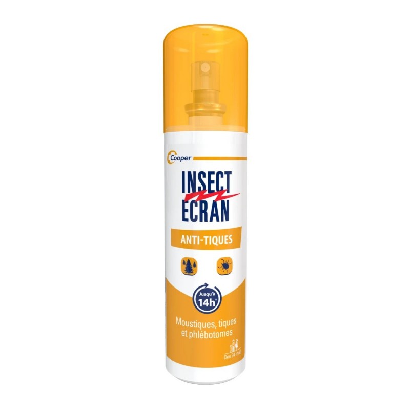 Insect Ecran Anti-Ticks 100 ml is a repellent product to be applied directly to the skin. Formulated with DEET, the product offers immediate protection as soon as it is sprayed. The repellent action of Insect Ecran Anti-Ticks protects for up to 14 hours against ticks in temperate zones, vectors of Lyme disease, and for up to 16 hours against mosquitoes and sandflies. Insect Ecran Anti-Ticks prevents tick bites in temperate zones where they proliferate, such as gardens, parks and wooded areas. This spray is suitable for all the family from the age of 24 months and can also be used by pregnant women in areas at risk of vector-borne disease transmission.