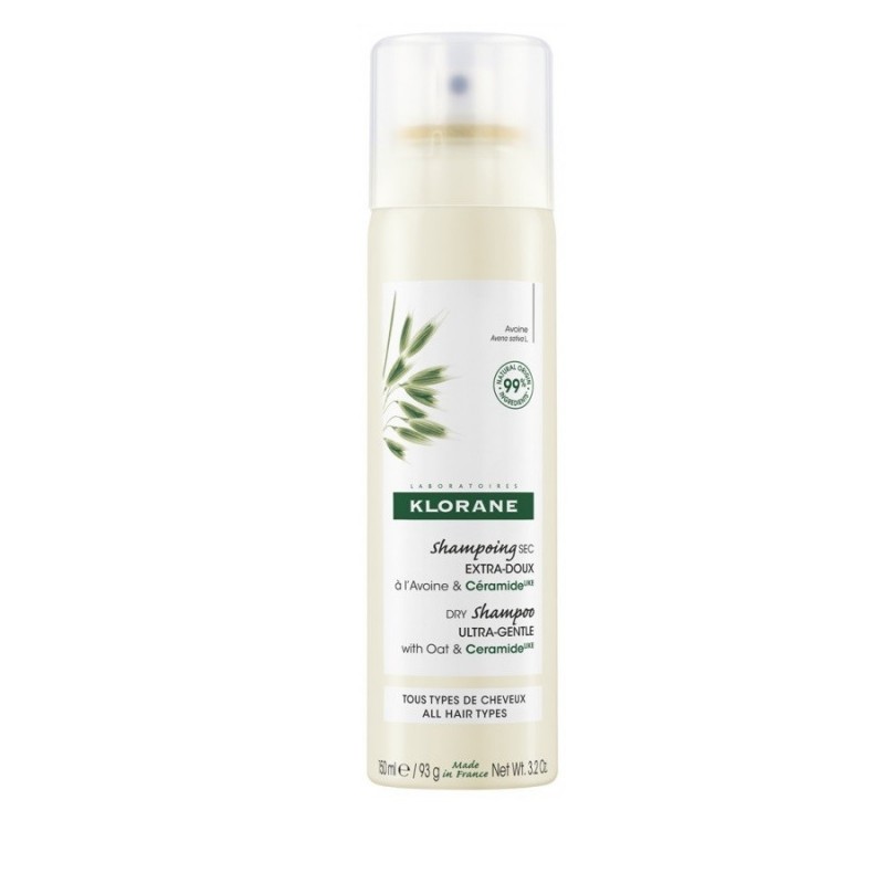 Klorane Ultra-Gentle Dry Shampoo with Oat and Ceramide 150 ml gently cleanses and revitalises all types of scalp and hair for 12 hours.