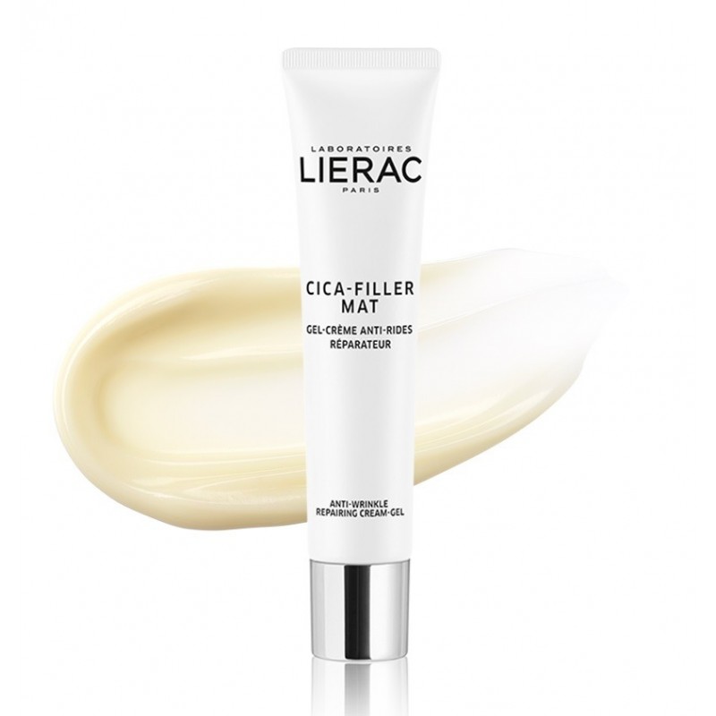 Lierac Cica-Filler Anti-Wrinkle Repairing Cream-Gel 40 ml is the mattifying anti-wrinkle, formulated for normal to combination skin. Its fluid, non-occlusive texture gives the skin a perfect matte finish. Soft-focus powders immediately blur wrinkles and add a beautiful, natural glow. Its fragrance with notes of jasmine, green apple, rosewood and ozonic accord distils a sensation of freshness.