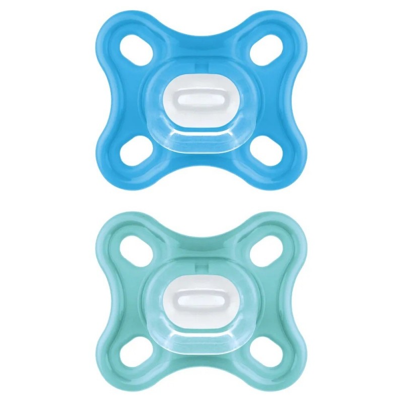 Mam Comfort 2 Silicone Soothers 0+ Months Blue are specially designed for newborns, even premature ones. The Mam Comfort soother is made entirely of silicone. It is therefore particularly hygienic and easy to clean.
