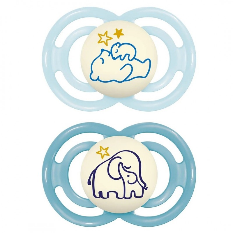 Mam Perfect Night Animals 2 Silicone Soothers 18+ Months is the best way to help healthy oral development and is easy to find in the dark.