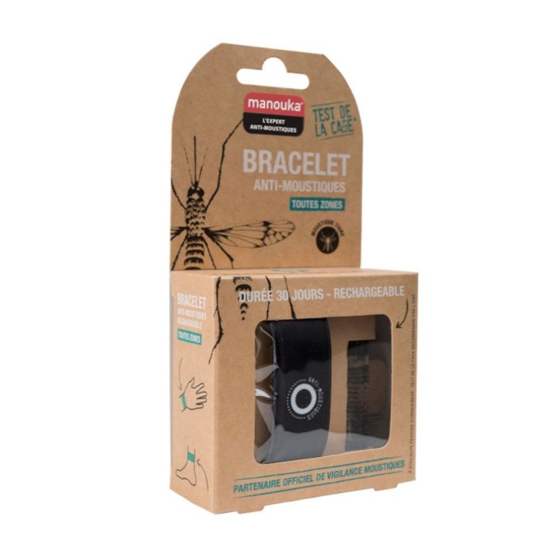 Manouka Mosquito Repellent Wristband Black is effective against all types of mosquitoes, tiger mosquitoes, ticks, flies, bees and horseflies... Suitable for children aged 36 months and over. All zones (tropical and temperate). It creates an immediate protection radius of up to 1 metre.