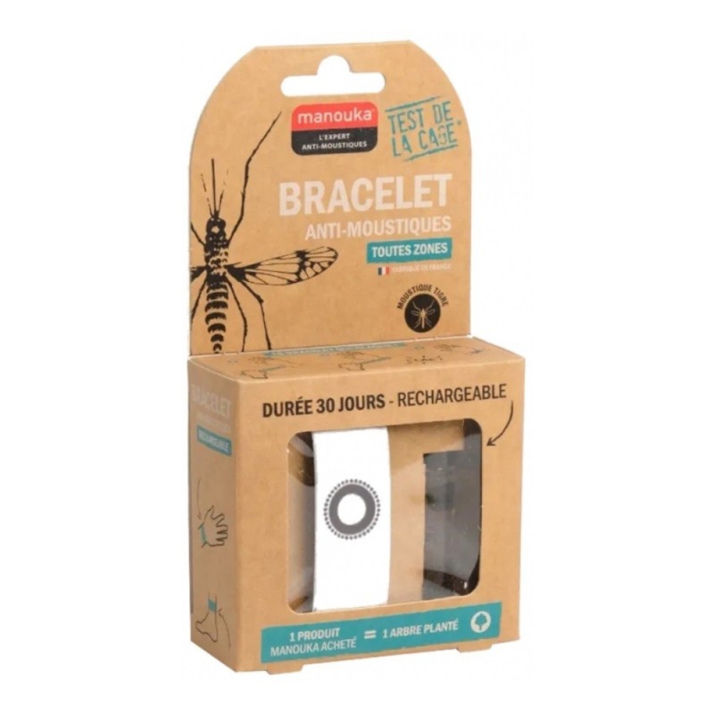 Manouka Mosquito Repellent Wristband White is effective against all types of mosquitoes, tiger mosquitoes, ticks, flies, bees and horseflies... Suitable for children aged 36 months and over. All zones (tropical and temperate). It creates an immediate protection radius of up to 1 metre.