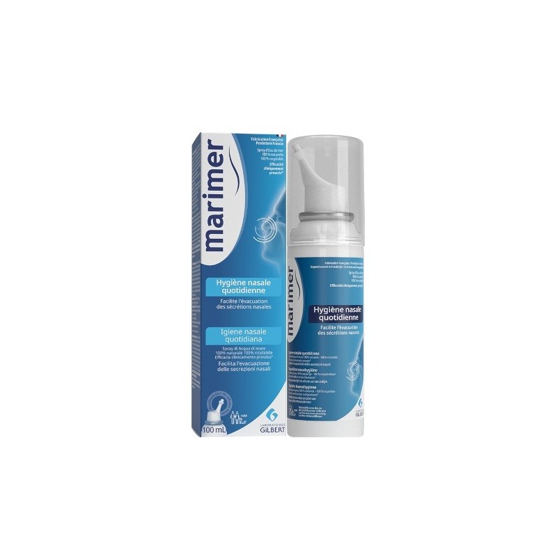 Marimer Daily Nasal Hygiene 100 ml is a seawater solution naturally rich in marine minerals and trace elements. Its formula gently evacuates nasal secretions that can sometimes ruin your life and limits allergic reactions. Its formula facilitates the gentle evacuation of nasal secretions, which can sometimes spoil your life, and limits allergic reactions.