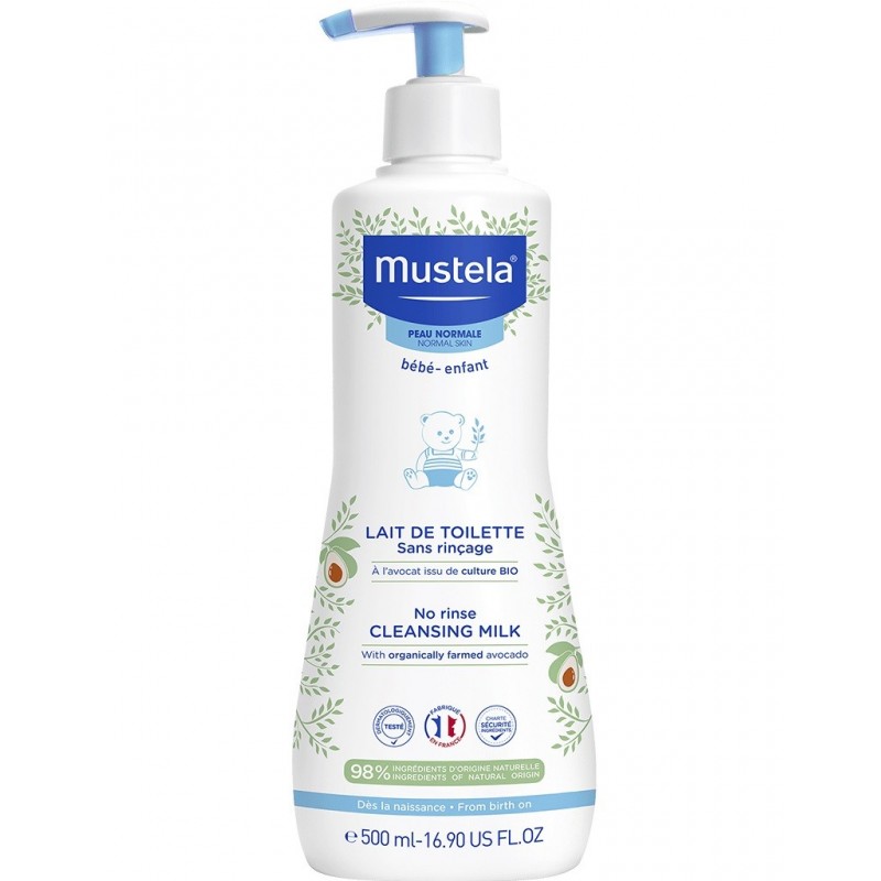 Mustela No-Rinse Cleansing Milk with Organic Avocado 500 ml gently cleanses the face and bottom of babies from birth, or children. It effectively eliminates impurities, promotes hydration and leaves the skin soft and supple. Its High Tolerance formula is made up of 98% natural ingredients.